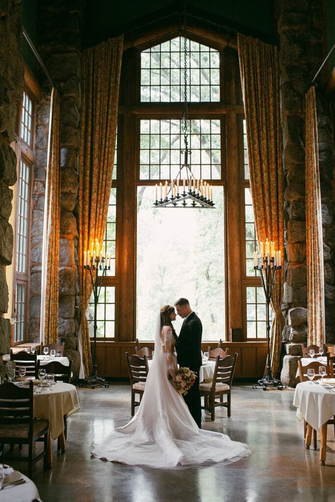 Wedding ceremonies are typically held on The Ahwahnee’s back lawn, which offers a breathtaking view of Yosemite Falls. Because of that stunning backdrop, most couples choose to host their Yosemite wedding here in the spring, when the falls are at their fullest and the surrounding meadow glows with new life.