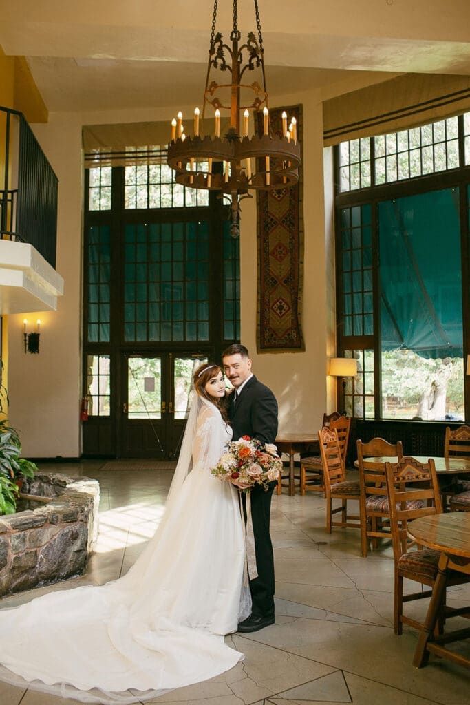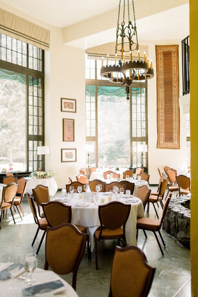 Inside, the Wawona Hotel features a small sunroom that’s perfect for intimate receptions or micro weddings because it’s not a giant reception space. With its wall-to-wall windows, the space fills with golden light, giving your celebration an airy, open feel while still keeping things cozy and private.