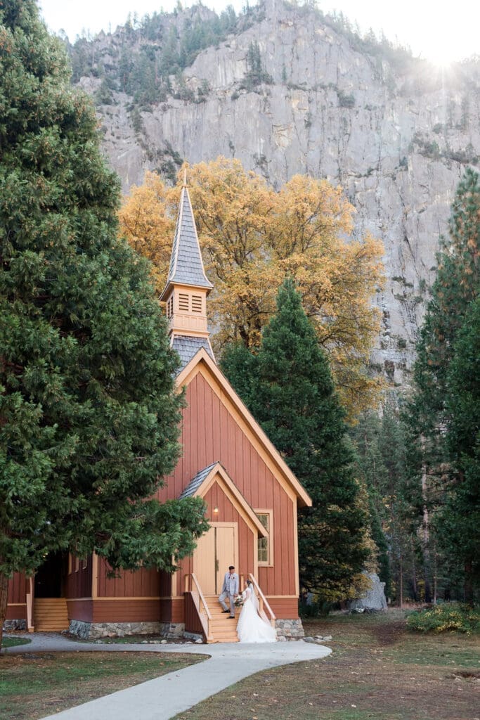 The historic Yosemite Chapel is the only indoor ceremony site on this list of Yosemite wedding locations. Its perfect for couples craving tradition within the park’s timeless setting.